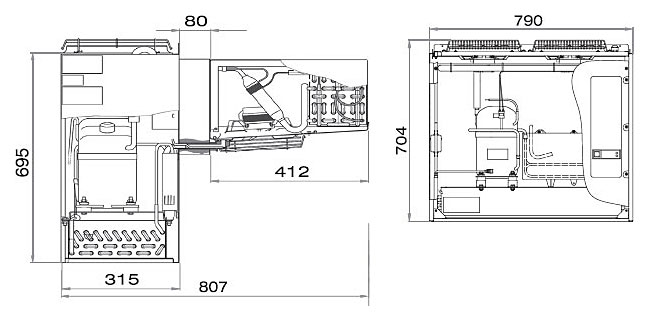 Машина оснащена системой автоматического оттаивания снеговой «шубы» на испарителе с использованием электрических нагревательных элементов, которые затем испаряют образующуюся влагу. Все компоненты гидросистемы холодильной машины соединены герметично, что обеспечивает её надёжность и эффективность работы.